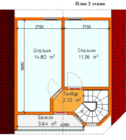Стены 2-го этажа - каркас (вагонка) или брус (сосна).